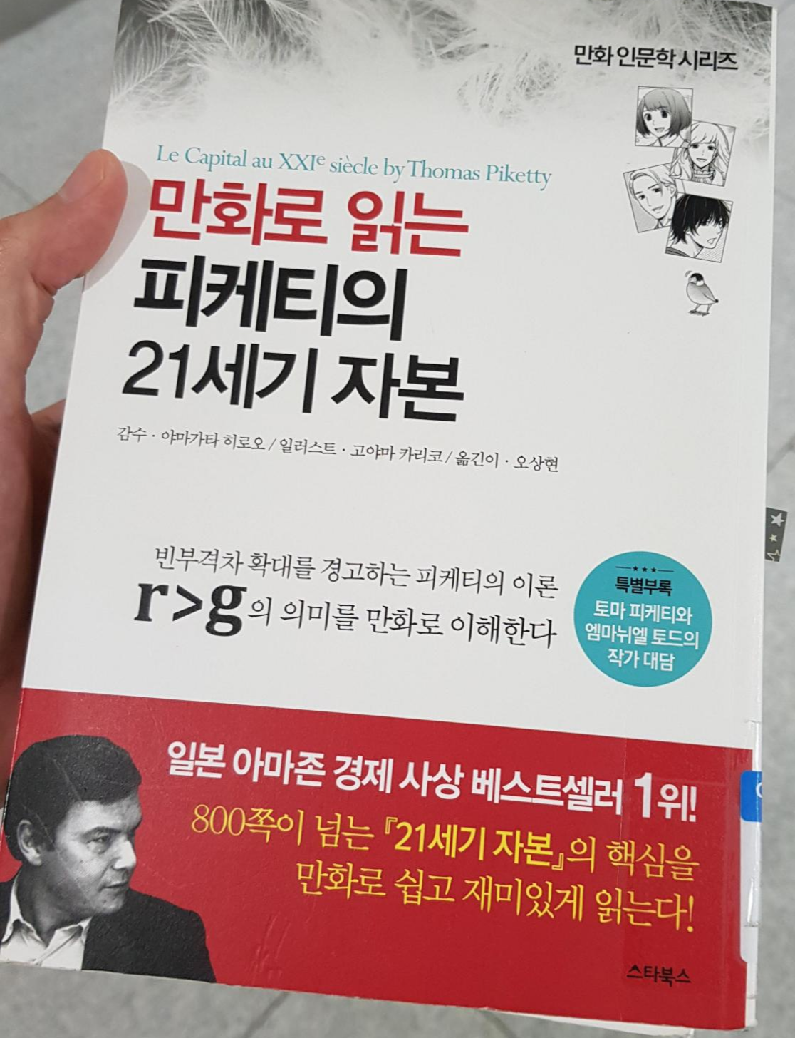 오래전 피케티라는 프랑스 학자가 발표한 21세기 자본이라는 책 따르면 자산의 증가율이 노동 수입보다 훨씬 크기 때문에 세계의 부는 시간이 갈 수록 불평등이 심각해지고 있으며, 이를 막기 위해서는 자산세를 도입해야 한다고 했던 기억이 있다. 새삼스러울 것도 없다는 생각으로 머리속 한켠에 쭈욱 밀어 두었는데, 우연히 도서관에서 관련된 만화책을 발견하고 빌려왔다.