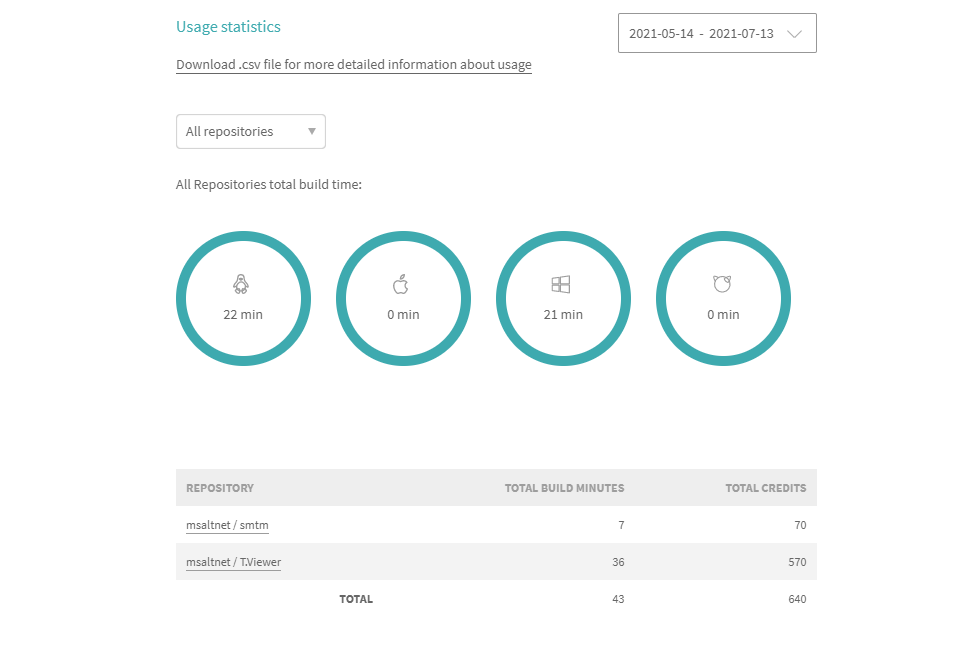 원래 travis-ci.org에서 오픈소스 프로젝트는 거의 무료로 사용할 수 있었는데, travis-ci.com으로 도메인도 변경하고 조금씩 유료화를 진행하는 듯하다. 내 프로젝트 smtm, t.viewer는 모두 travis-ci.org에 있었는 6월 15일부터 서비스가 중단되었다. 다행이 travis-ci.com으로 생각보다는 쉽게 이동할 수 있었다. 지금은 무료로 한달에 10000크레딧을 주고 private, open-source 무관하게 사용할 수 있다. 시간이랑 플랫폼에 따라서 크레딧 차감량이 달라지는 것 같다. T.Viewer는 윈도우, 리눅스 크로스 플랫폼 빌드를 해야하고 사이즈도 커서 크레딧을 많이쓰게 되었다. 간단한 파이썬 프로젝트는 한달내내 써도 문제가 없을 것 같다.