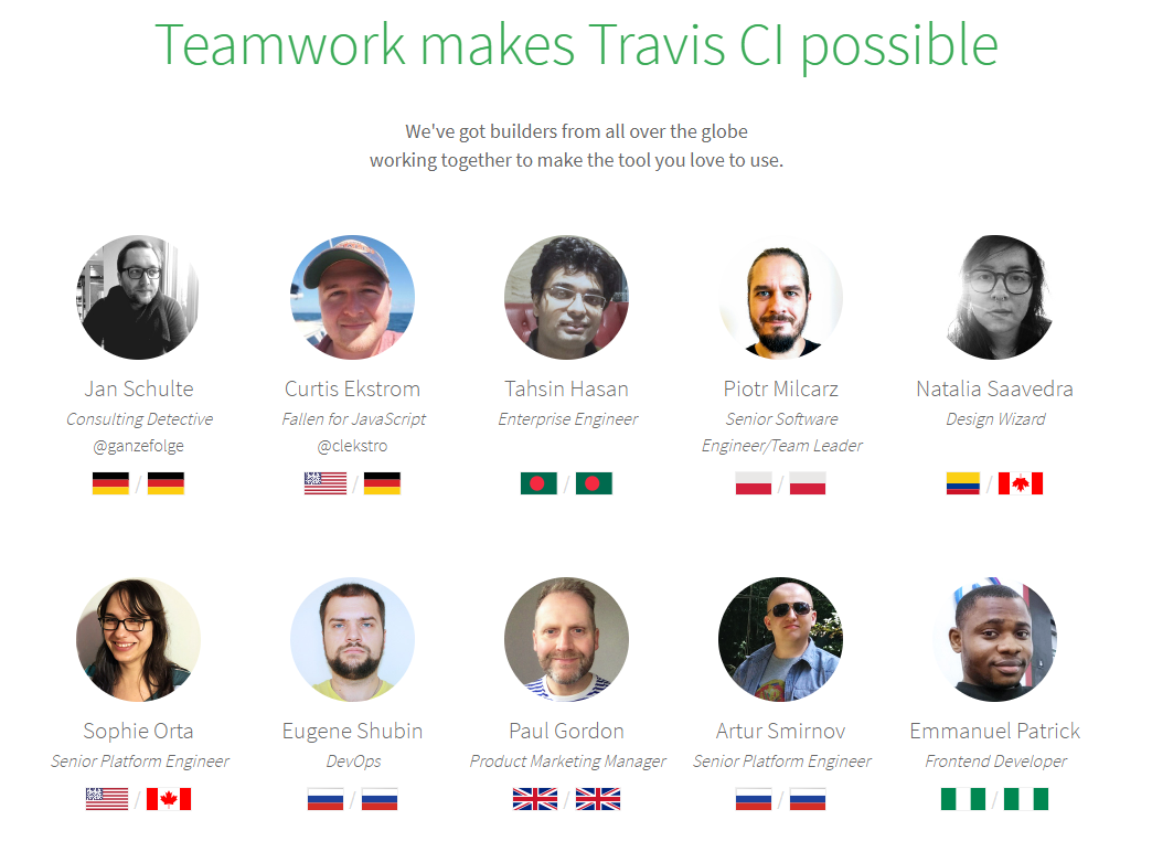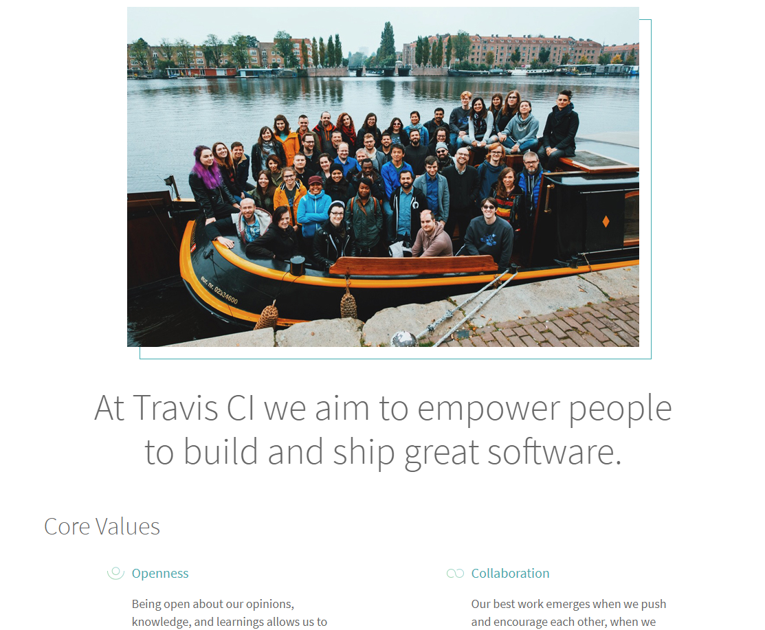 Travis에 대해서는 Tizen .Net Xamarin.Forms - CI 적용 글에서 다루긴 했었다. Travis는 독일에 있는 CI/CD 전문 서비스 기업이다. 여러모로 잘 정돈된 느낌이다. 기술적으로도 꼼꼼하게 준비가 되어있고, 문서나 사이드, UX도 만족스럽다. 사이트에 가면 회사의 철학이나 지향점, 팀원들의 사진을 볼 수 있는데 한배에 타서 단체사진을 찍은 모습이 인상적이다. 나도 나중에 회사 차리면 요트 빌려서 파티하고 거기서 단체사진 찍어야지.